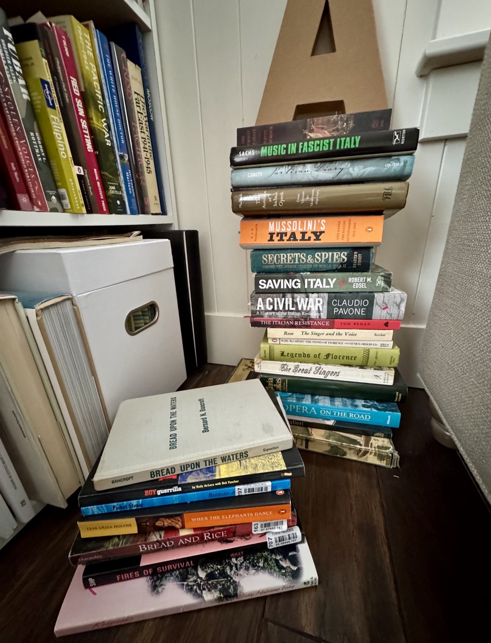 Among the resources used to aid in my research of Italy are the books: Mussolini’s Italy by R.J.B. Bosworth, The Pursuit of Italy by David Gilmour, Music in Fascist Italy by Harvey Sachs, Partisan Diary written by partisan leader Ada Gobetti, Women and the Italian Resistance by Jane Slaughter, and Resisting Bodies: Narratives of Italian Partisan Women edited and translated by Rosetta D’Angelo and Barbara Zaczek. Charles Neilson Gattey’s Luisa Tetrazzini: The Florentine Nightingale, as well as John Frederick Cone’s Adelina Patti: Queen of Hearts, helped shape my understanding of the lives of opera prima donnas.